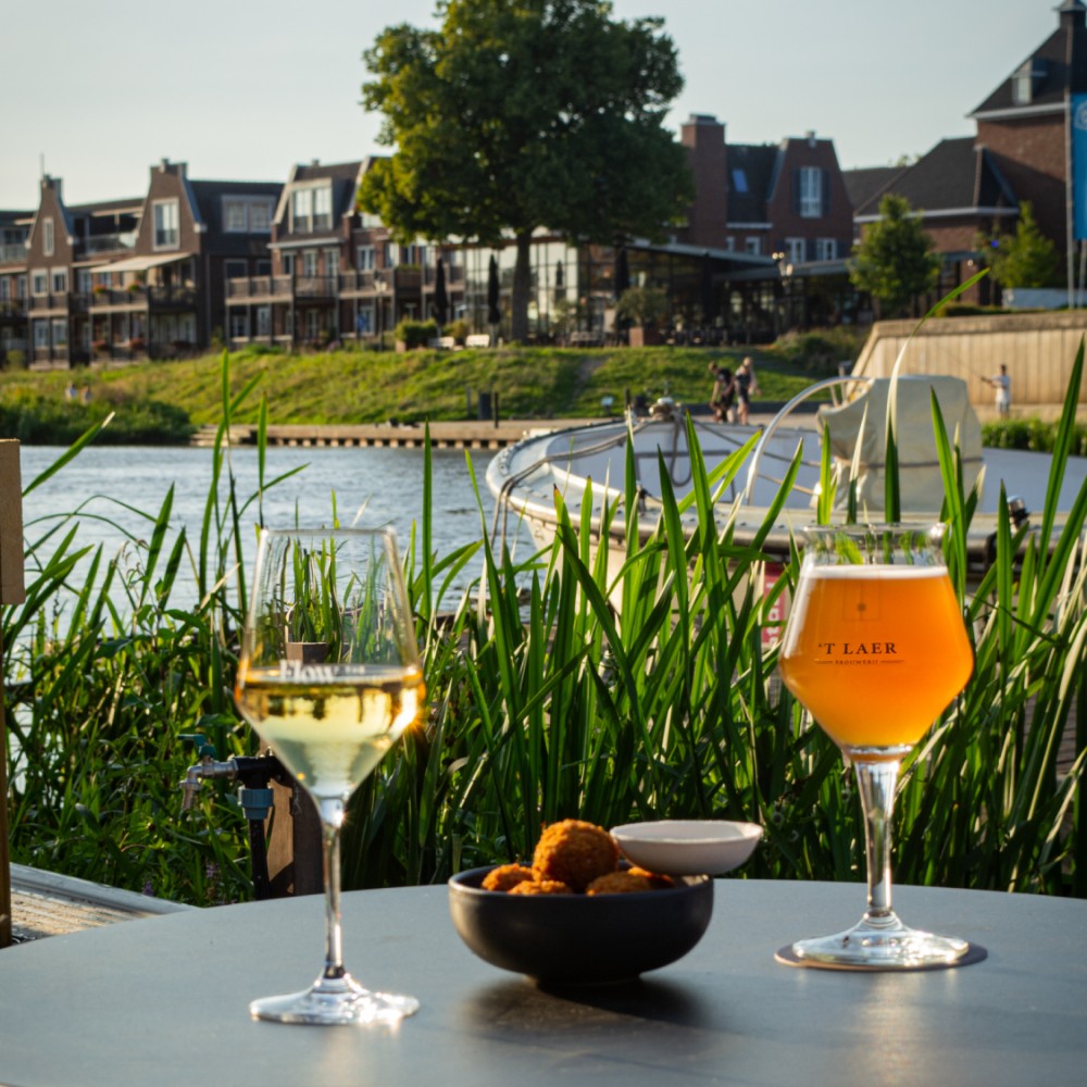 Geniet aan het water van heerlijke drankjes en cocktails, een goed glas wijn of ons eigen gebrouwen speciaalbier van Brouwerij ’t Laer. Op de kaart vind je ook bites en kleine gerechten om samen te delen – perfect voor een ontspannen middag of een lange zomeravond.