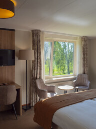 Geniet van extra ruimte en comfort in onze Deluxe Kamer, geschikt voor maximaal drie personen. De kamer is voorzien van een sfeervolle zithoek, en een extra vast bed.