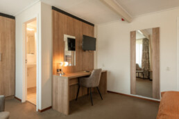 Onze Deluxe Kamer biedt extra ruimte en comfort, perfect voor maximaal drie personen. De warme en uitnodigende inrichting creëert een rustige sfeer, ideaal om te ontspannen na een dag vol activiteiten. Geniet van de comfortabele zithoek en het praktische bureau, en ervaar alle moderne gemakken in de stijlvolle badkamer. Deze kamer is bij uitstek geschikt voor gezinnen of families.