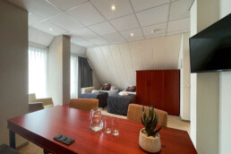 In ons hotel hebben wij verschillende kamertypes beschikbaar. Zo kun je kiezen uit een Eenpersoonskamer, Standaard tweepersoonskamer, Comfort tweepersoonskamer, Junior Suite en Familiekamers. Al onze kamers zijn voorzien van douche en/of bad, toilet, flatscreen TV en een kluisje. De Junior Suites hebben een douche en/of bad, toilet, flatscreen TV, kluisje, een zitje met bureau en merendeel een balkon. Alle kamers zijn per lift te bereiken.