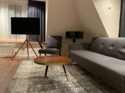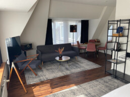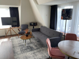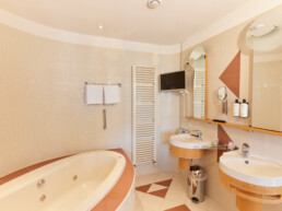 Of je nu wilt ontspannen, werken of quality time met de familie of je partner wilt doorbrengen – deze modern ingerichte Junior Suite biedt het allemaal. Met een ruime zithoek, een apart werkgedeelte en een luxe whirlpool is dit de perfecte plek voor elk type verblijf. De suite is ook zeer geschikt voor families en kan op verzoek zelfs worden ingericht als romantische bruidssuite, compleet met sfeervolle details om jullie speciale dag extra onvergetelijk te maken. De suite is van alle gemakken voorzien voor een heerlijk comfortabel verblijf. De suite is uitgerust met een ruim tweepersoonsbed, inclusief twee hoofdkussens per persoon. De suite biedt de mogelijkheid om extra bedden bij te plaatsen. De badkamer is uitgerust met een whirlpool en douche, wasbak, toilet, toiletpapier, handdoeken, een föhn en supplies van Marie Stella-Maris. In de kamer is verder aanwezig: een zitje met comfortabele stoelen of bank, een werkgedeelte, gratis draadloos netwerk, kledingkast met hangers, thee- en koffiefaciliteiten, tv met radiofunctie, telefoon, ventilator (op aanvraag), wekservice (op aanvraag), strijkplank met strijkbout (aanwezig op de gang), wasservice (tegen betaling), roomservice (tegen betaling), op sommige kamers is een patio aanwezig.