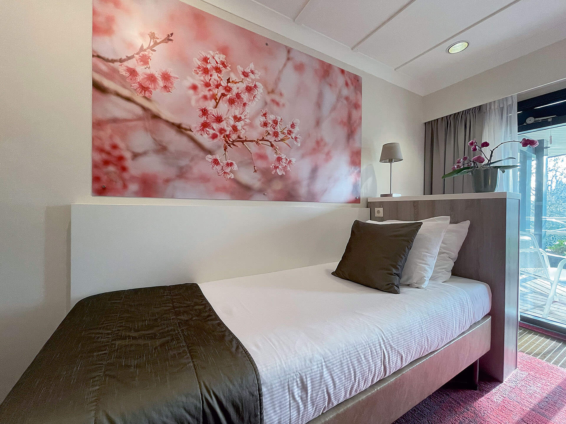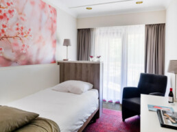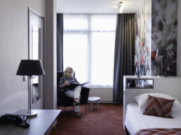 Onze knusse, cozy single kamer is perfect voor onze alleenreizende gasten. Enkele kamers beschikken over een balkon. Dit kamertype is ideaal voor gasten die in alle rust willen overnachten in Lochem. De kamers zijn voorzien van een flatscreen-tv, koffiemachine, badkamer met douche en föhn. Optioneel: badjas en slippers (€8,50 p.p.). Honden zijn helaas niet toegestaan op dit kamertype.