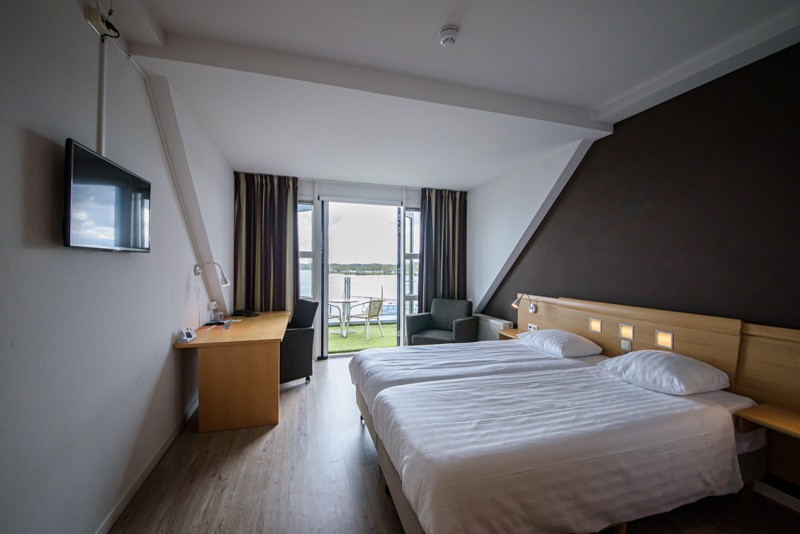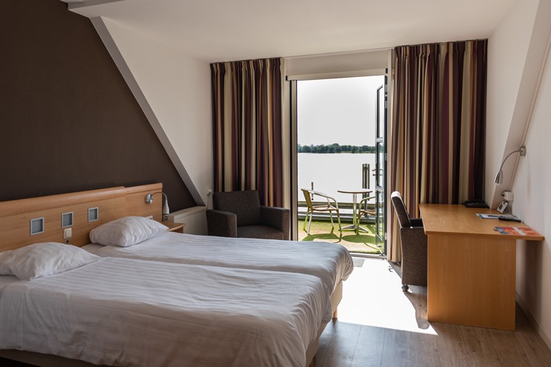 De kamers zijn voorzien van een tweepersoonsbed (of twee aparte bedden), inclusief twee hoofdkussens per persoon. De badkamer is uitgerust met een douche, wasbak, toilet, toiletpapier, handdoeken, een föhn en toiletartikelen. In de kamer is verder aanwezig: een tafel met stoel en een zitje, gratis draadloos netwerk, kledingkast met hangers, tv met radiofunctie, airconditioning, roomservice (tegen betaling) en natuurlijk het adembenemende uitzicht op rivier de Maas.